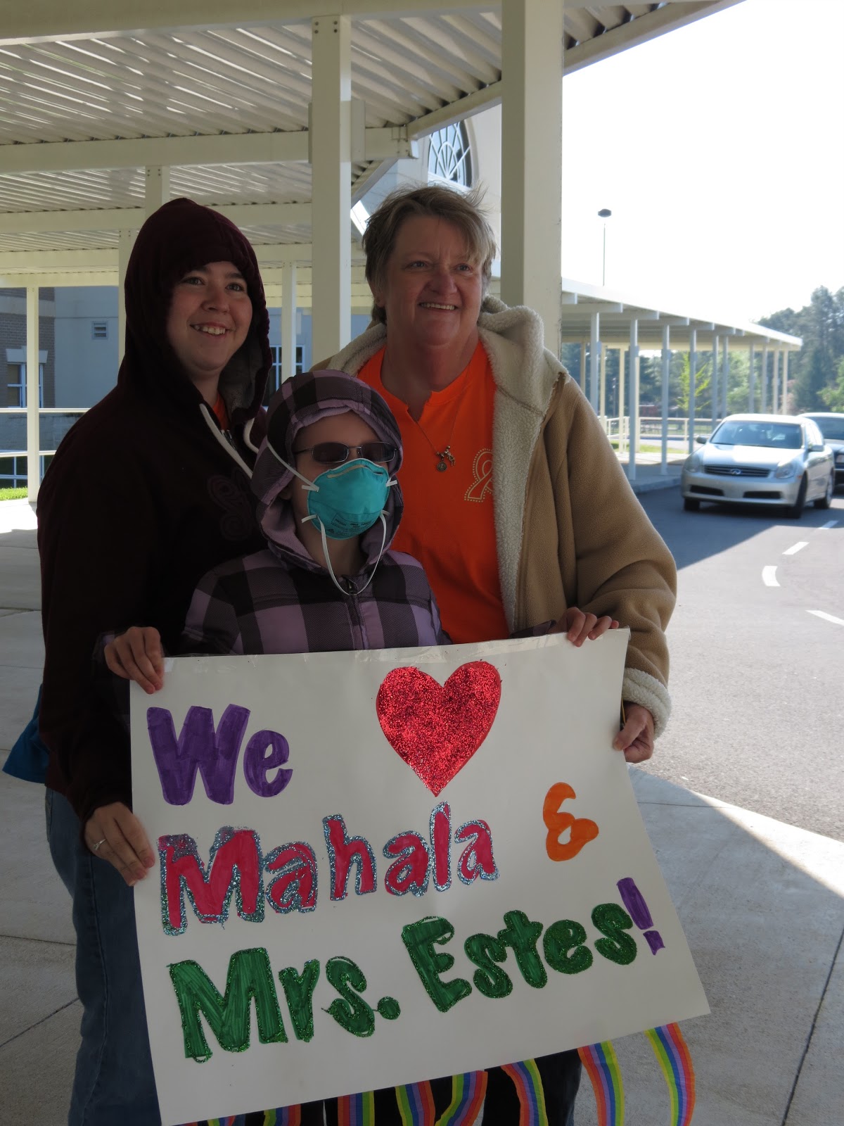 On Monday, April 22nd, AES held our Relay for Life Fun Run in honor of former AES GATE student, Mahala Lowery, and also in honor of 3rd grade teacher, Mrs. Estes. It was a beautiful ( chilly ) day! Mahala, her mother, and grandmother rode in the police car that led our teachers and students as they began our all day walk for the American Cancer Society. Mahala was first to release her balloons to celebrate being home from St. Jude Children's Hospital in Memphis. Mahala spent 6 months battling leukemia at St. Jude. We are so thankful that she is home and doing well! She rode in the police car with another of my former students, Officer Jay Lacy. He was in my 4th grade class in 1997-98 and is now on the police force of the city of Albertville. Teachers also released balloons in honor of Mrs. Estes. She is a wonderful teacher and is loved by everyone at AES!